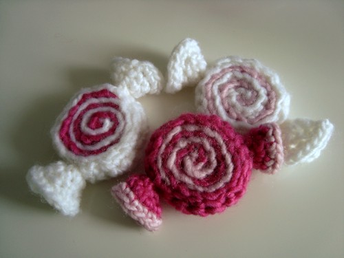 This morning Alexander and I went shopping to AH XL, and took a little bag with us, which contained 3 crocheted sweets. They're about 4 inches big, and the pattern can be found HERE. Aren't they cute?